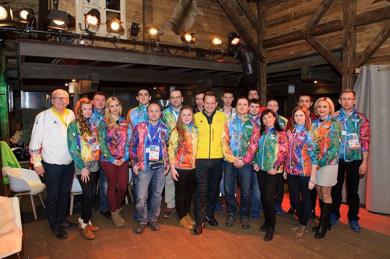 Große Ehe für die deutschen Volunteers, die vom Deutschen Olympischen Sportbund in Person von DOSB-Präsident Alfons Hörmann (gelbe Jacke) und Michael Vesper, Chef de Mission, (weiße Jacke/ganz links) zum Abschiedsessen eingeladen wurden.Sergej König ist zurück. Zurück aus Sotschi. In der Stadt am Schwarzen Meer war der 41-jährige Eichsfelder als Volunteer bei den Olympischen Winterspielen eingesetzt. Insgesamt sorgten 25.000 Freiwillige dafür, dass alles reibungslos über die Bühne ging.