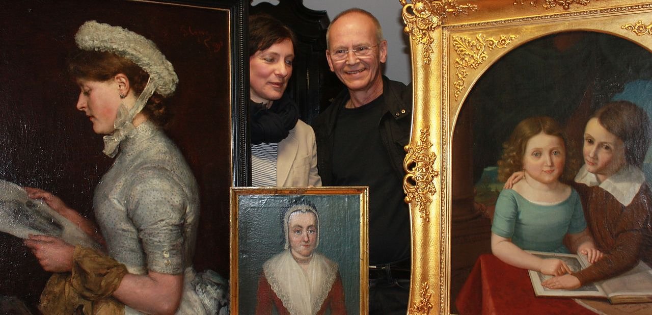 Das Porträt einer Magd (Mitte) ist von einem unbekannten Maler aus dem 18. Jahrhundert. Dieses Bild habe ich nach erfolgter Konservierung komplett restauriert, erklärt Bruckschlegel . Bei den beiden anderen Gemälden, Die Lesende und das Geschwisterpaar, erfolgte nur eine Rahmenrestaurierung mit teilweiser Bildrestaurierung.