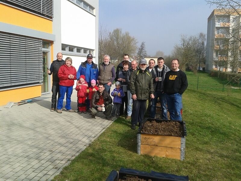 Mütter, Väter und auch Opas halfen mit, die Sitzbänke und Tische der Kleinen mit einem neuen Anstrich zu versehen und fünf neue Hochbeete zu bauen, die sich die Kinder sehnlichst gewünscht hatten.