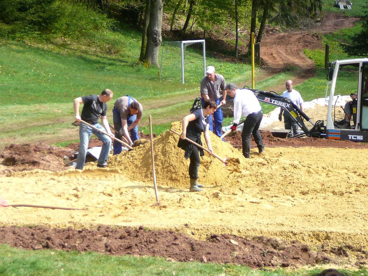 Gestern wurde im Rahmen eines Arbeitseinsatzes des Fördervereines Waldbad Neustadt ein neuer Beach-Volleyballplatz im Waldbad angelegt. Bei bestem Wetter mussten 150 Tonnen Sand vom Gondelteich bis in Bad gefahren und verteilt werden...