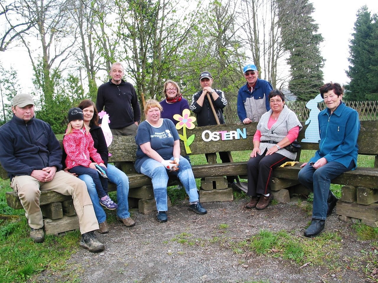 Mit Schaufel und Besen wurde dem "Winterschmutz" beim Oster-/Frühjahrsputz zu Leibe gerückt. Pflanzkübel wurden mit Blumen bestückt, das Umfeld der Denkmale im Ort gepflegt und die "Straßengosse" gereinigt. Den fleißigen Helfern, hier bei der "Osterbank" an der Dorfstraße, ein herzliches Dankeschön für den Einsatz.