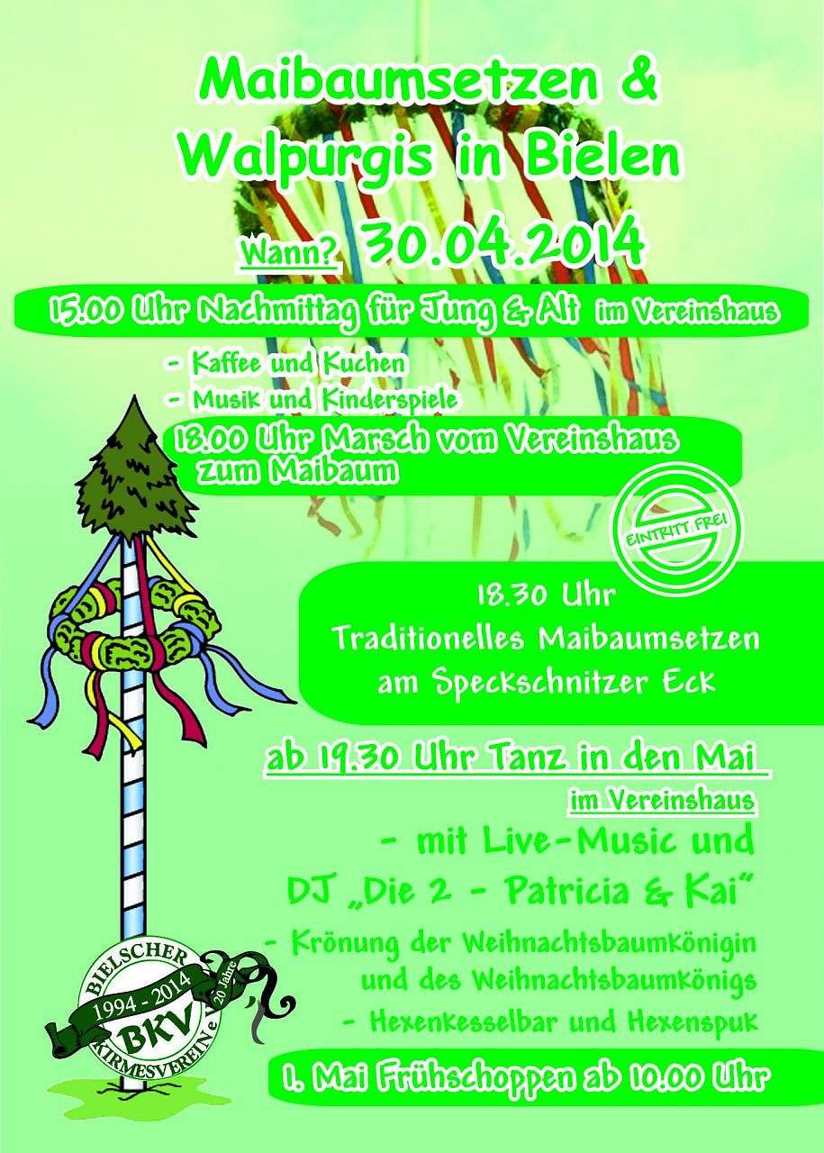 Es ist in Bielen zur Tradition geworden den letzten Tag des Monats April festlich zu begehen. Auch in seinem Jubiläumsjahr hat sich der Bielsche Kirmesverein wieder Etwas einfallen lassen, um in den Mai hineinzutanzen …