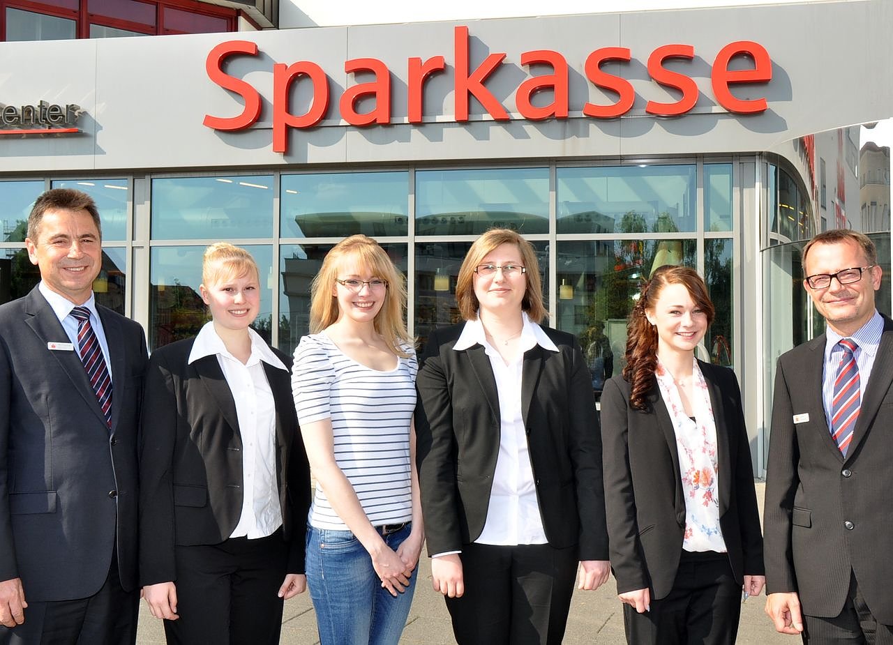 Autor: redVon links: Vorstandsvorsitzender Wolfgang Asche und Holm Dvorak, Gruppenleiter Personalentwicklung mit den neuen Auszubildenden Melina Meier, Sandy Rössel, Julia Kaiser, Vanessa- Christin Kerst