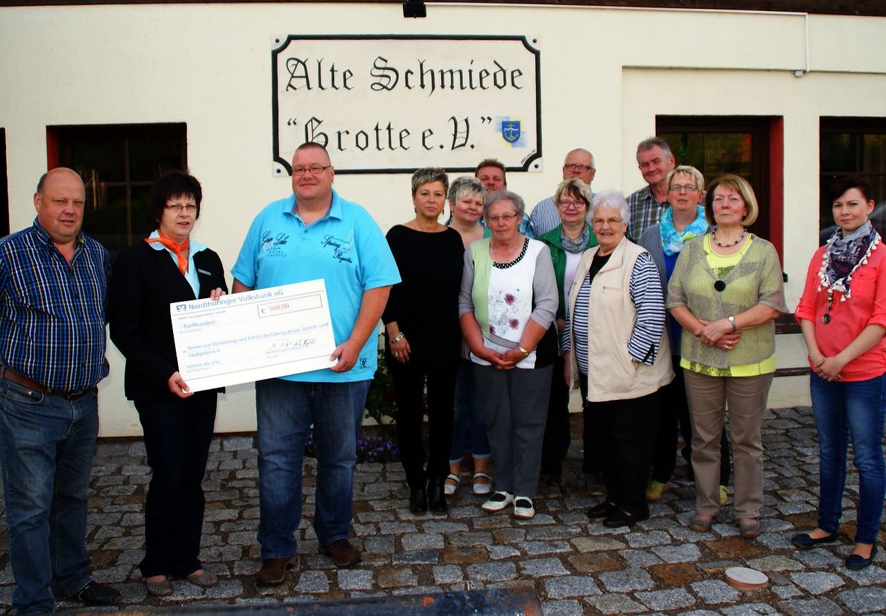 Die Leiterin der Nordthüringer Volksbank, Hannelore Rys, überreichte dem Vereinsvorsitzenden Mario Krüger einen Scheck in Höhe von 500 Euro. Diese Zuwendung wird in die Renovierung der Vereinsräume und zur Anschaffung von