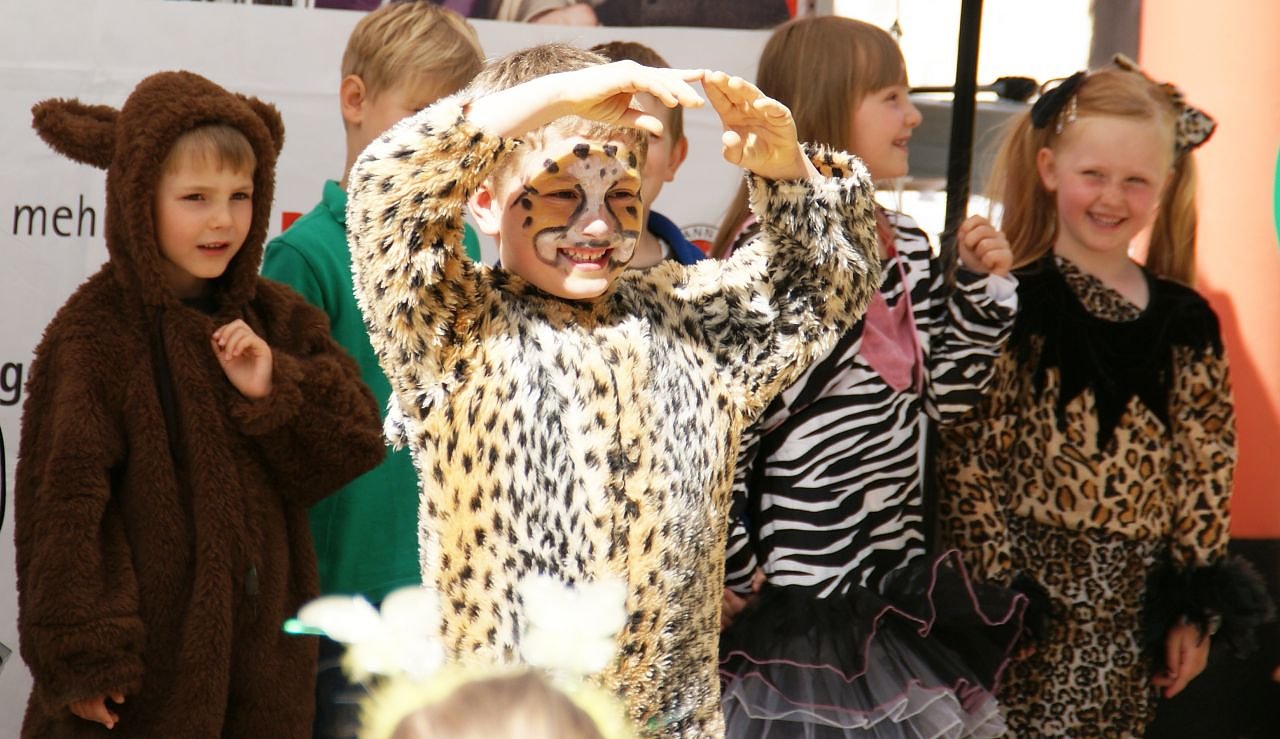 Die Kinder und Erzieher überraschten ihre Gäste unter anderem mit einer wilden Modenschau, bei der die Kinder allerlei Tier-Kostüme vorführten.