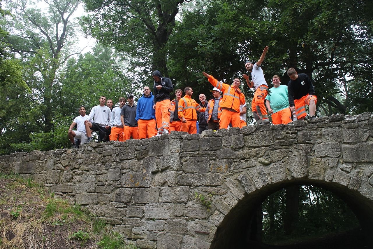 Das ist so gewollt. Ziel soll der Exkursion soll es nämlich auch sein, den Straßenbauern die Möglichkeiten weiterer Bildungswege aufzuzeigen. Nach drei Tagen Arbeitseinsatz will man deswegen auch zum eher touristischen Teil der Exkursion übergehen. Ein Besuch der Erfurter Fachochschule steht dann auf dem Plan genauso wie Besichtigungen der Wartburg und der KZ Gedenkstätte Buchenwald.