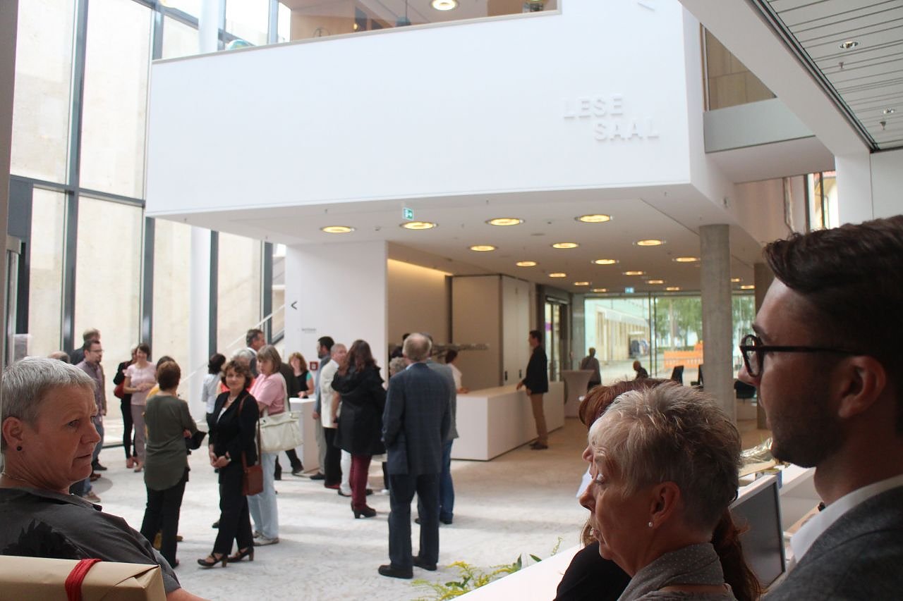 In Anlehnung an ein Zitat des ehemaligen Bundespräsidenten Horst Köhler anlässlich des Brandes der Anna-Amalia Bibliothek sagte Oberbürgermeister Dr. Klaus Zeh: "Weniges wird in der kulturellen Welt als ein so großes Geschenk empfunden wie der Neubau einer Bibliothek." Zeh erinnerte auch an die Geschichte des Ortes, auf dem nun der neue Gebäudekomplex steht und an dem sich einstmals eine der ersten und wichtigsten Kirchen der Stadt befand.