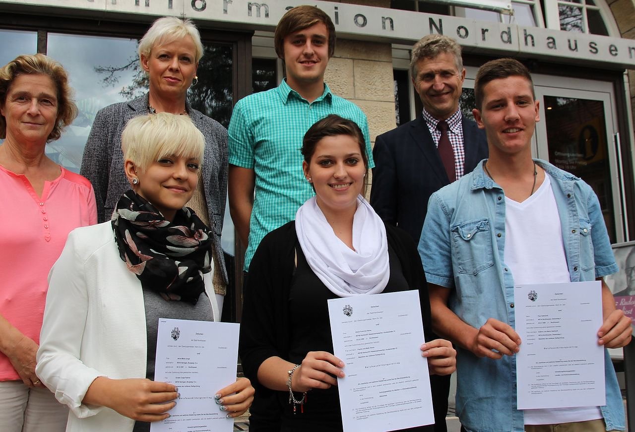 Da wir seit einigen Jahren nur noch bedarfsgereicht ausbilden, stehen die Chancen für Sie nicht schlecht bei guten Leistungen auch übernommen zu werden. Dafür wünsche Ihnen viel Glück, sagte er. Zurzeit werden bei der Stadtverwaltung Nordhausen sieben Auszubildende und fünf Beamtenanwärter ausgebildet.