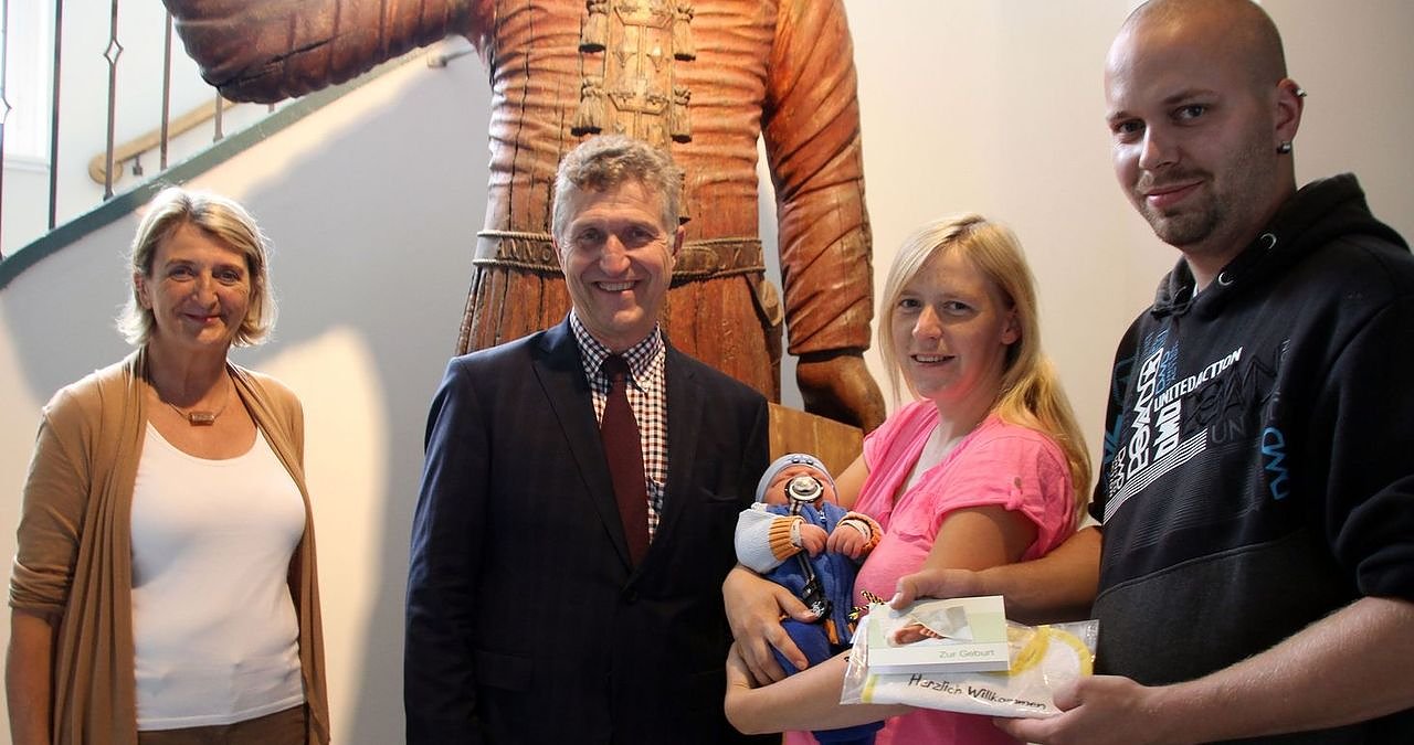 Die ersten jungen Eltern waren Nicole Hollube und Michael Zecha. Zur Geburt ihres Sohnes Liam Jerome gab´s die Glückwünsche von Oberbürgermeister Dr. Klaus Zeh.