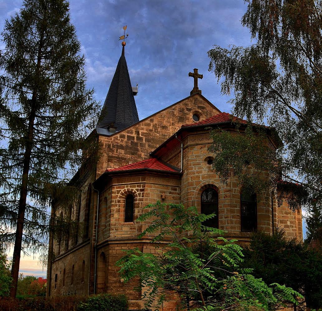 Autor: redAltes Gemäuer im abendlichen Schick: Die St. Elisabeth Kirche zu Wülfingerode. Besinnlich und mystisch zugleich.