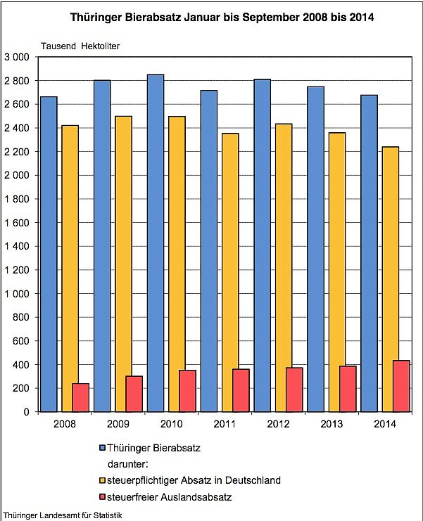 Thüringer Bierabsatz Januar bis September 2008-2014 (Foto: Thüringer Landesamt für Statistik)