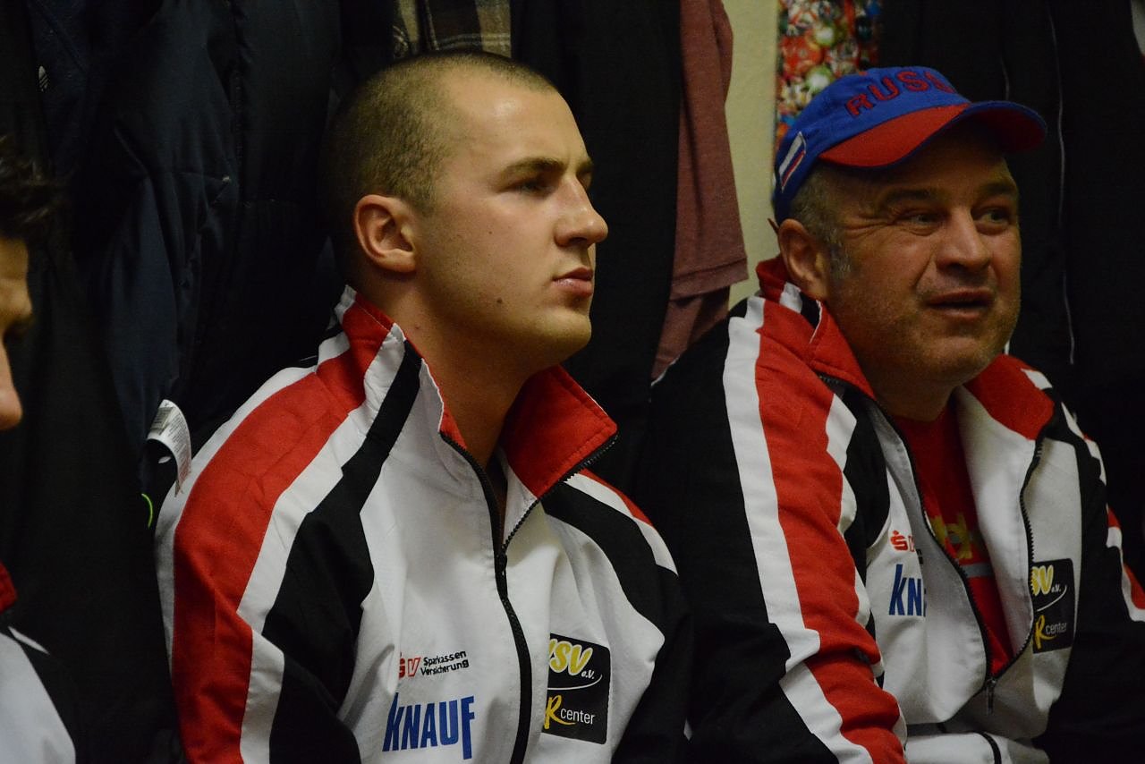 Konzentriert lauscht der russische Neuzugang Vladimir Ivanov der Kabinenansprache von Cheftrainer Andreas Dietrich-Scherfling. In seinen bisherigen Einsätzen im Superschwergewicht wusste Ivanov zu überzeugen (Foto: Sandra Arm)