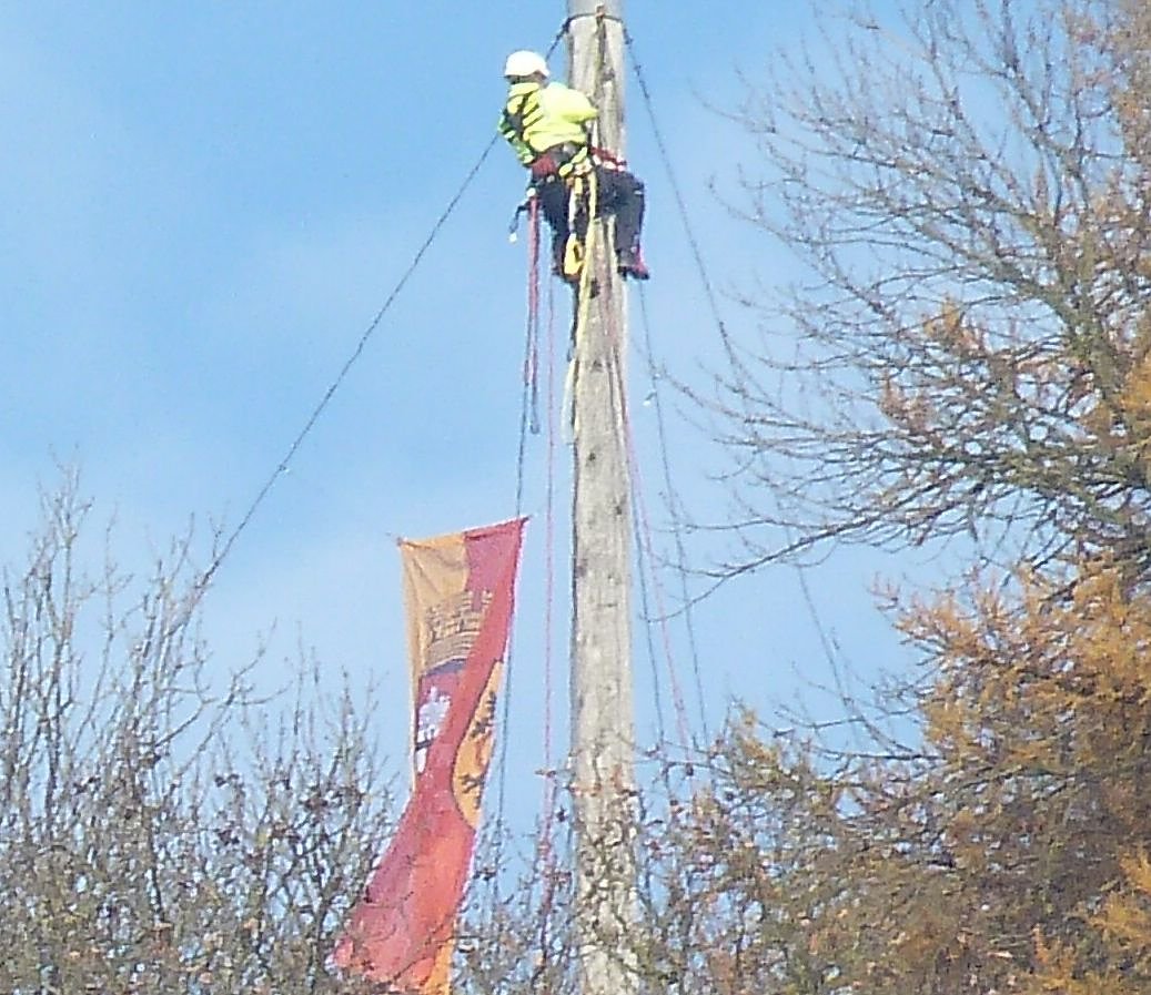 Im Zusammenhang mit der Instandsetzung der Fahne musste der Mast bestiegen werden.