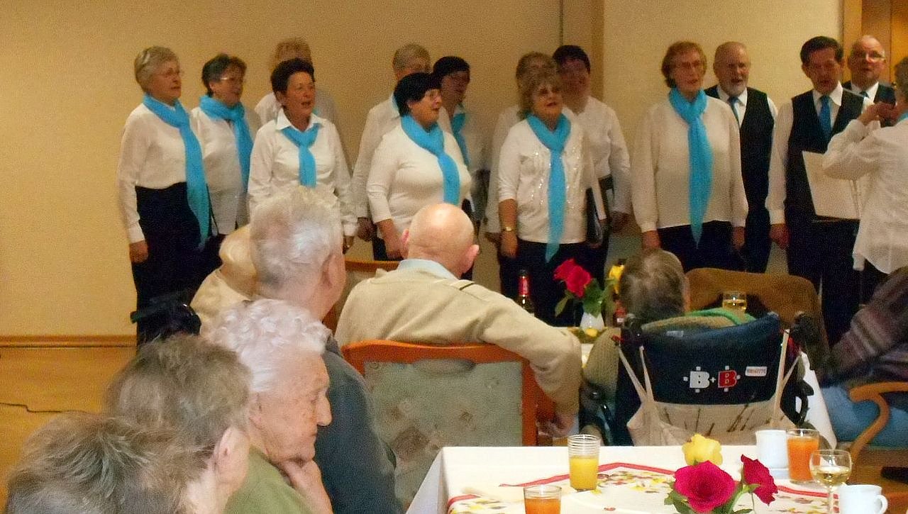 Bei einem Gläschen Wein lauschten alle Bewohnerinnen dem Nordhäuser Konzertchor, der mit wunderschönen Klängen unsere Frauen unterhielt. Danach gab es von den Mitarbeiterinnen noch einige Tanzeinlagen, auch wurden Lieder angestimmt, die zum Mitsingen begeisterten.