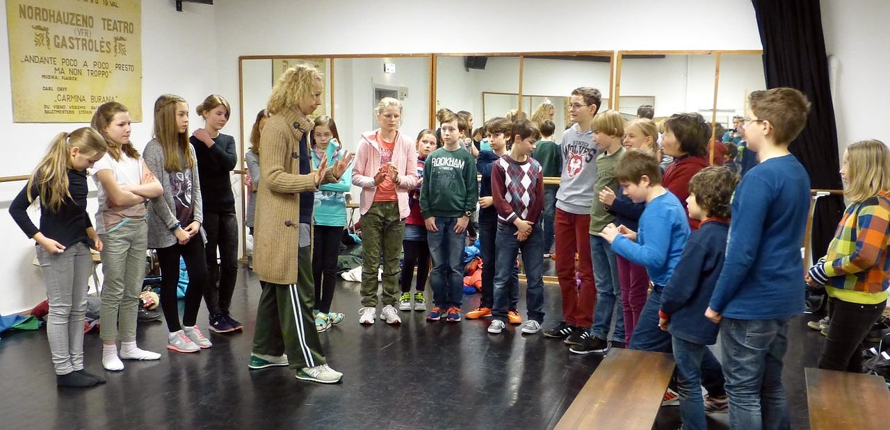 Mittwochabend, 18.30 Uhr, Ballettsaal Theater Nordhausen: Iris Limbarth, die Regisseurin des Musicals Die Päpstin, trifft sich mit 20 Kindern, um sie auf die anstehende Probe einzustimmen.