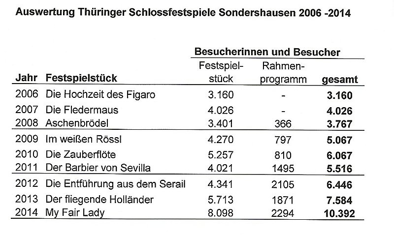 Die "Thüringer Schlossfestspiele Sondershausen" haben sich zu einer wichtigen touristischen Marke in Thüringen entwickelt, darin waren sich alle Beteiligten einig. Da im Sommer bereits die 10 Spielzeit beginnt, war es Zeit einen kleinen Rückblick auf das bisher erfolgreichste Jahr 2014 zu werfen, sondern auch den Blick auf den kommenden Sommer und das Jahr 2016, hier hatte kn bereits vorab berichtet (VORSCHAU AUF THÜRINGER SCHLOSSFESTSPIELE 2016).