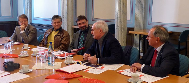 v.li. Lars Tietje (Intendant Theater Nordhausen/ Loh-Orchester Sondershausen), Markus Frank (Generalmusikdirektor Loh-Orchester Sondershausen), Joachim Kreyer (Bürgermeister Stadt Sondershausen), Dr. Helmut-Eberhard Paulus (Direktor Stiftung Thüringer Schlösser und Gärten), Ulrich Heilmann (Vorstandsvorsitzender Kyffhäusersparkasse). Foto: Anne-Kristin Schmidt