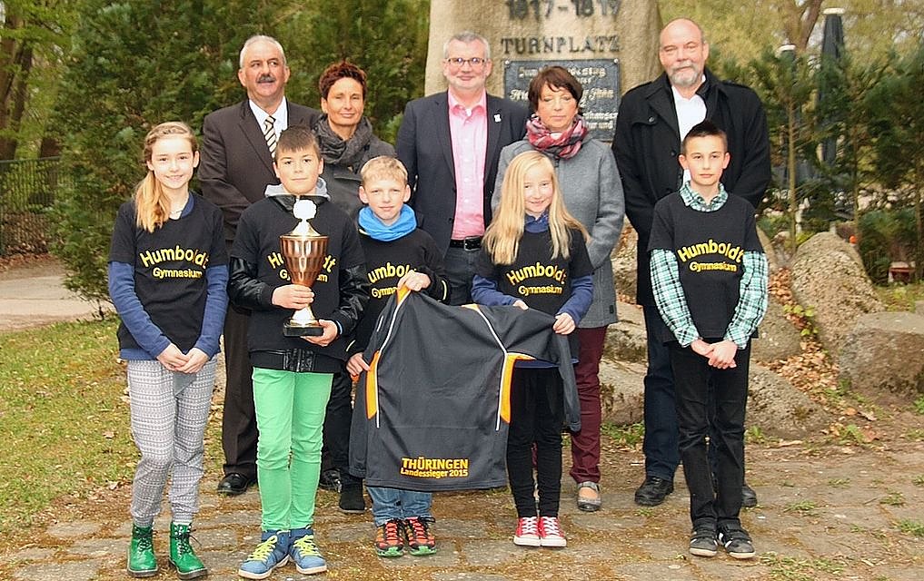 Der Landkreis unterstützt die Teilnahme am Bundesfinale auch finanziell. Stefan Nüßle gratulierte heute Morgen am Jahn-Denkmal im Gehege den jungen Turnern zum Erfolg beim Landesfinale und zur Qualifikation fürs Bundesfinale und wünschte viel Erfolg in Berlin.
