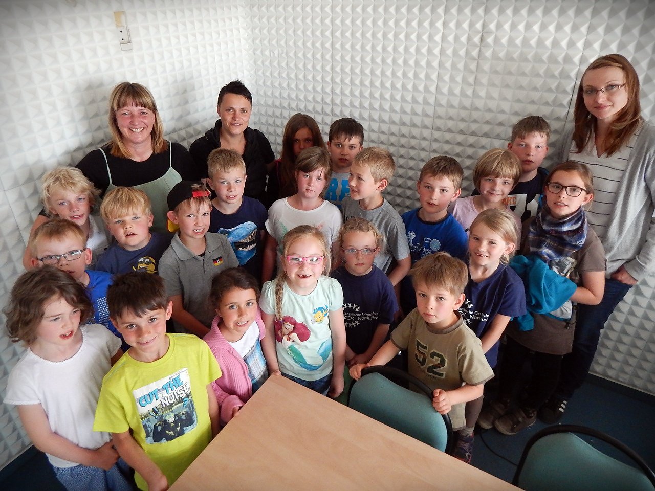 Wie arbeitet man im Radio? Warum sieht das hier in manchen Räumen aus, wie in Papas Büro und in anderen Zimmern gibt es Tapete aus dickem Schaumstoff? Fragen die natürlich gestern bei einem Rundgang im Radiosender beantwortet wurden. Die Kinder der einzigen inklusiven Klasse an der Schule in Krimderode hatten aber auch ein Buch mitgebracht. In Nino geht es um einen Jungen, der anders ist als andere.