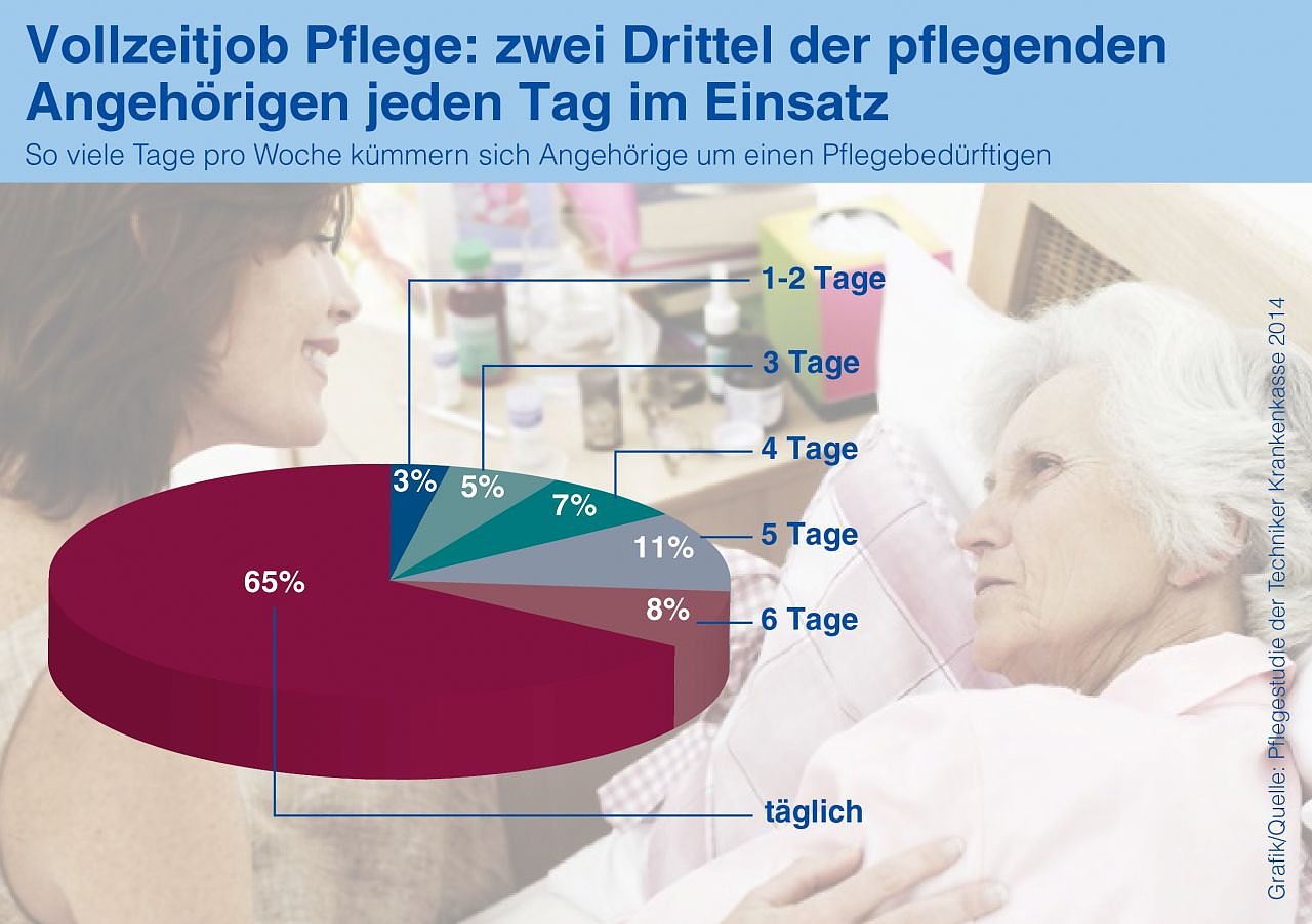52,2 Prozent der Pflegebedürftigen wurden im Kreis zu Hause ausschließlich von Angehörigen betreut. Weitere 18,8 Prozent aller Pflegebedürftigen erhielten zusätzlich Unterstützung durch ambulante Pflege. 29 Prozent wurden vollstationär gepflegt.
