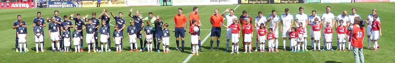 Die Mannschaften kommen auf das Feld. Auf geht's Wacker, kämpfen und siegen.