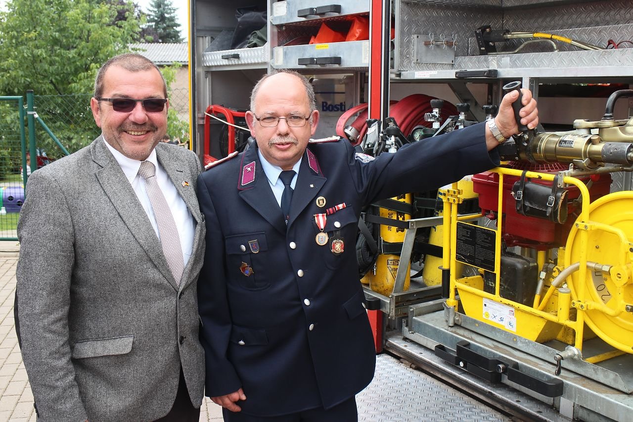 Sind Stolz auf ihre freiwillige Feuerwehr Heringen: Bürgermeister Maik Schröter und Stadtjugendwart Steffen Theuerkauf (Foto: Angelo Glashagel)