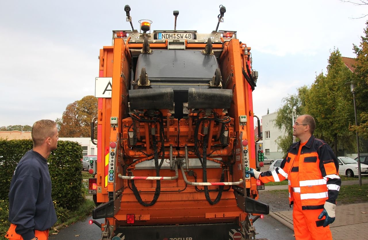 Als konkrete Praxiserfahrung ist Jendricke mit einem Entsorgungsfahrzeug mitgefahren und hat Abfallbehälter im Stadtgebiet von Nordhausen mit den Kollegen entleert. "Es war gegenüber dem üblichen Büroalltag ein tolle Abwechslung. Man muss natürlich permanent aufpassen, dass man nicht vom laufenden Fahrzeugverkehr überrollt wird oder sich beim Entleeren der Tonnen die Hände klemmt.