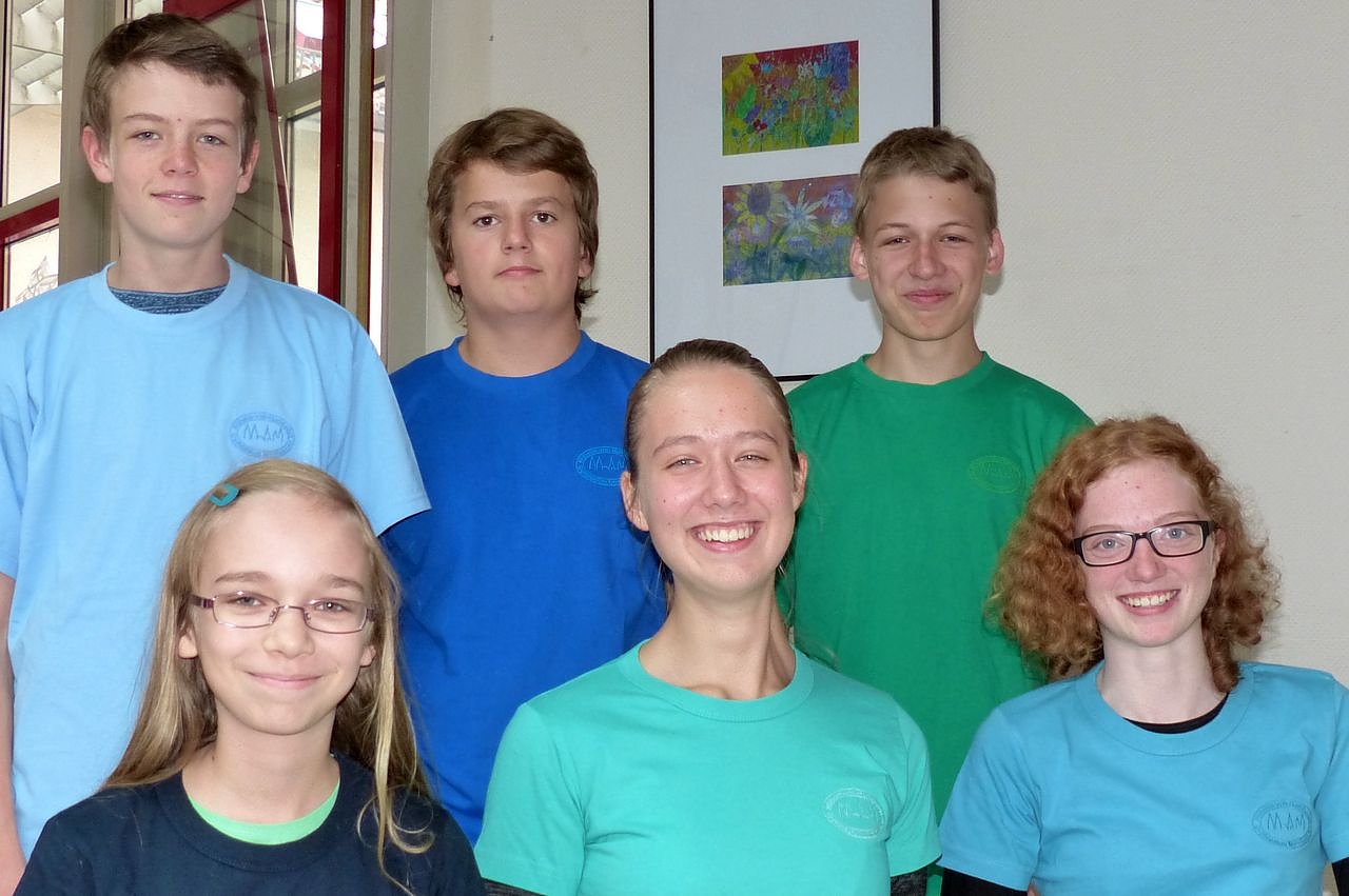 Auf dem Bild von links nach rechts: hinten - Oskar Zwanzig, Felix Polte, Dominik Rogge, vorn - Vivien Kaun, Kim Hahnemann, Caroline Neumann