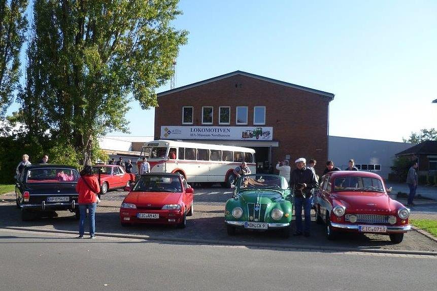 Ende September besuchten 50 Vereinsfreunde vom Oldtimerverein Sollstedt 1999 das IFA-Museum. Sie kamen standesgemäß mit sieben Oldtimerfahrzeugen, einem Bus und sechs PKW, nach Nordhausen und stellten das Museumsgelände vorübergehend in das Licht längst vergangener Tage...