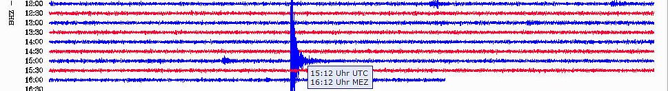 Zurück zu Hause hat sich kn gleich auf die Suche gemacht und die Erdbebenaufzeichnungsstelle auf dem Possen registrierte einen deutlichen Ausschlag.