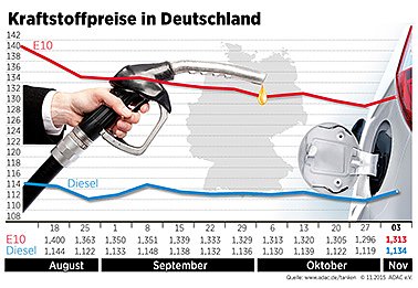 Der Preis für einen Liter Super E10 ist im Vergleich zur Vorwoche um 1,7 Cent gestiegen und liegt derzeit bei 1,313 Euro. Auch der Diesel zog an: Der Liter kostet jetzt durchschnittlich 1,134 Euro (plus 1,5 Cent)...
