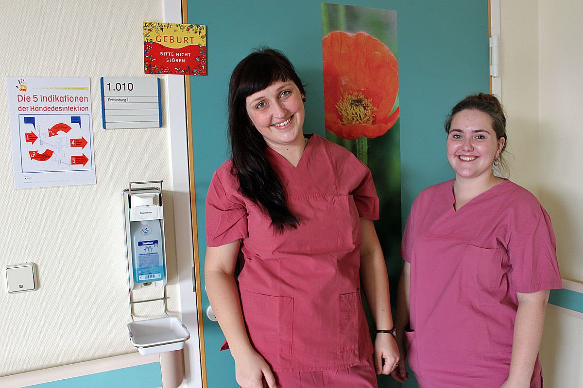 Wer sind nun diese beiden Neuen, die das Team im Kreißsaal vervollständigen wird?MariaGeyer und Jessica Mertin traf kn vor dem Kreißsaal. Übrigens sind die verschiedenen Kreißsäle natürlich top ausgestattet und auch vom Design her jeder mit einem anderen Aussehen gestaltet worden, ob als Margeritenzimmer, Mondzimmer und Lavendelzimmer.