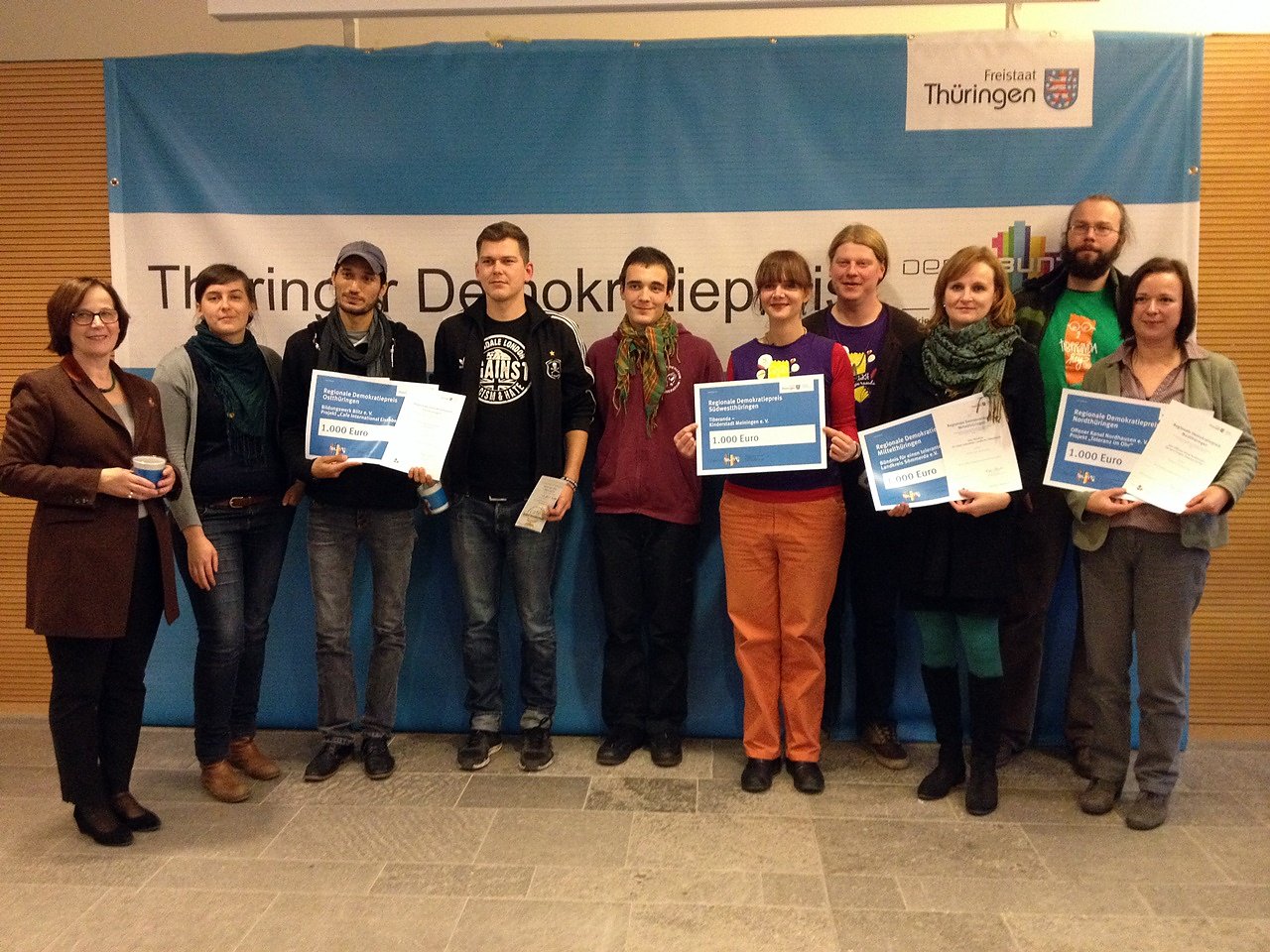 Der Thüringer Demokratiepreis wird 2015 das dritte Jahr in Folge verliehen. Im Juni wurden die Preise der ersten Kategorie vergeben. Die Preisträger werden von einer Jury ausgewählt. Diesem Gremium gehören Axel Hemmerling (MDR), Matthias Quent (Universität Jena), Harald Zeil und Ute Bach (beide für die Thüringer Bürgerbündnisvernetzung) und Bildungsministerin Birgit Klaubert an.