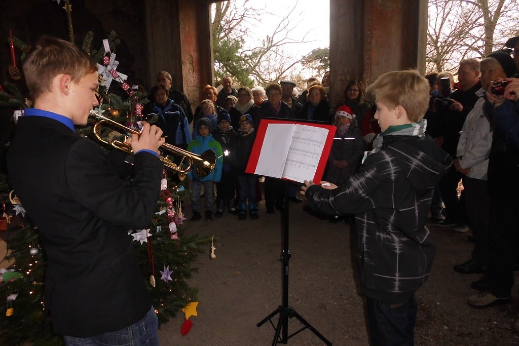 ur Eröffnung des Advents im Park spielte Justin Gießner (Schüler der Kreismusikschule) Trompete und Chiara Vollrath las für die großen und kleinen Gäste ein Weihnachtsgedicht. (Foto: Förderverein Park Hohenrode)