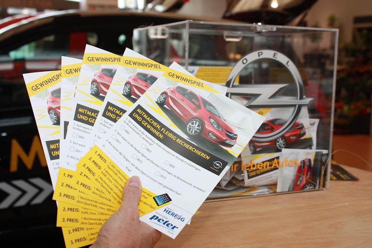 gesichert. Wer sein Kreuzchen bei 2003 für das Jahr, seitdem die Autohaus-Peter-Gruppe am Rinschenrott 5 in Göttingen ansässig ist, und bei 2012 als das Göttinger Einstiegsjahr der Marke OPEL im Autohaus Peter gesetzt hatte, landete in der großen Losbox.