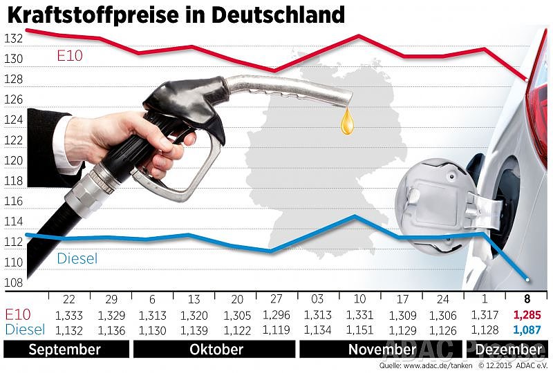 Autor: redEin Liter kostet laut ADAC im bundesweiten Mittel 1,087 Euro, das ist ein Minus von 4,1 Cent.
