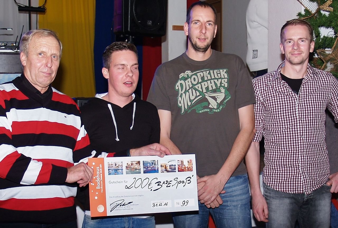 FSG-Präsident Günter John konnte einen Badehaus-Gutschein an die Spielführer der drei Salzaer Herrenmannschaften weiterreichen. Damit können die Kicker in der Winterpause ihre Kondition auch beim Wassersport festigen. Die FSG ´99 Salza bedankt sich ganz herzlich beim Badehaus-Team.