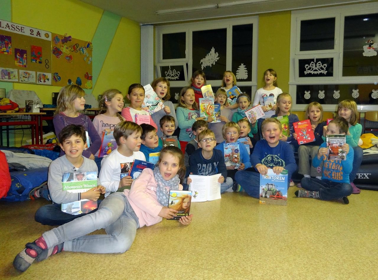 Die Schüler der zweiten Klasse der Grundschule Görsbach haben jetzt eine Lesenacht veranstaltet – einer der Höhepunkte der Weihnachtsprojektwoche. Am Anfang durften Mamas und Papas noch dabei sein...