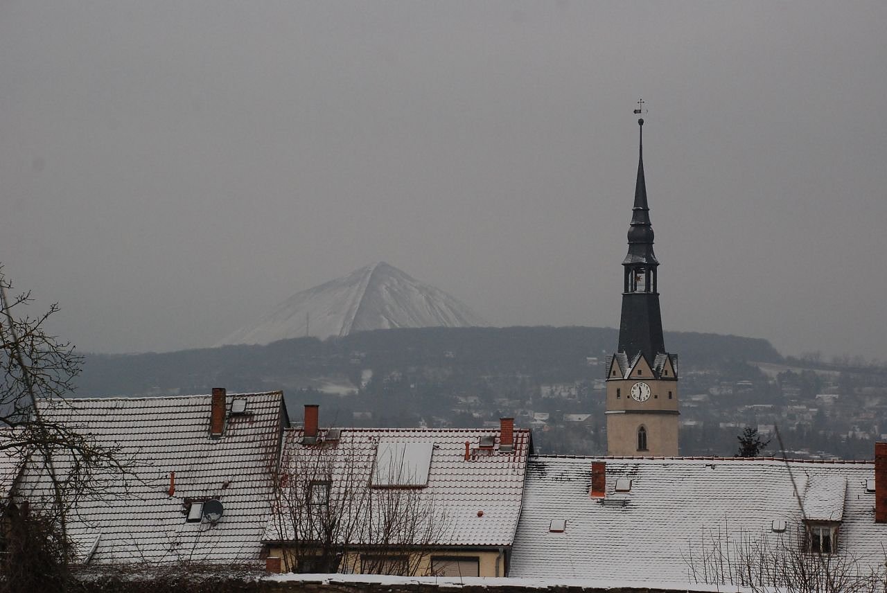 Seit heute Morgen verzuckert: die Schachthalde in Sangerhausen. (Foto: Jochen Miche)