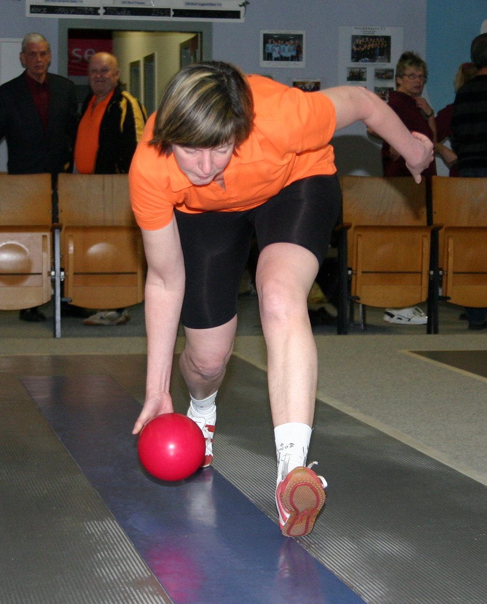 Und sie scheinen für diesen Kampf gut gerüstet. Vor allem, weil Birgit Galonska nach ihrem Tief rechtzeitig wieder zu Spitzenform gefunden hat. Im Derby mit der NSV-Zweiten war sie die alles überragende Spielerin. Im Spiel gegen den guten Günter Ohme enteilte sie schon auf der ersten Bahn mit tollen 235:199 Holz. Auf Bahn Zwei dann zwar ein paar unnötige Fehlwürfe zu viel, dennoch auch da noch ein knapper Sieg mit 211:210. Ihre 446 Gesamtholz brachten die Frauen schon in Führung. Dabei hatte Dagmar Reitmeier gegen den verbesserten Klaus Röcke diesmal keine Chance.