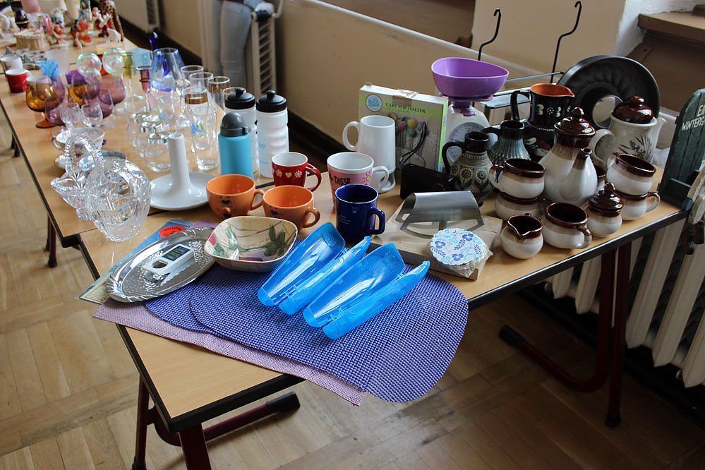 In 12 Räumen konnte man sich über die Ausbildung im SBZ informieren. Beim Flohmarkt stellten sich das Berufsvorbereitungsjahr (BVJ) vor, wie hier bei den Bereichen Wirtschaft und Hauswirtschaft. Neben dem Flohmarkt betrieb man auch einen Imbiss.