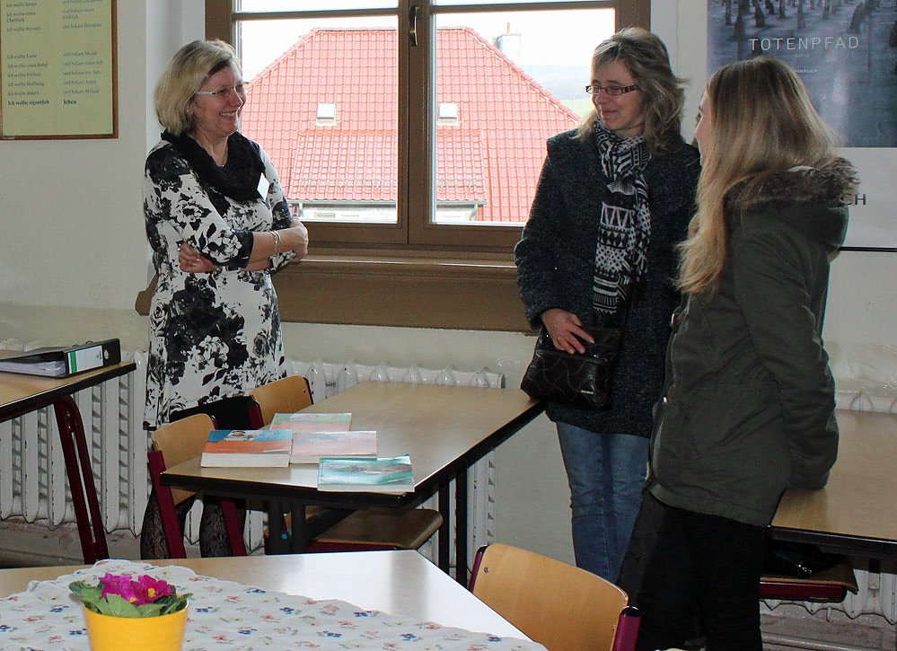 In vielen Fällen waren natürlich Eltern und Großeltern dabei um sich ebenfalls über die Ausbildungsmöglichkeiten zu informieren, wie hier mit einer der Ausbilderinnen (und hier wurde bereits klar, es soll die Ausbildung zur Verwaltungsangestellten werden), oder gleich in einem gesonderten Raum mit Schulleiterin Carmen Lederer.