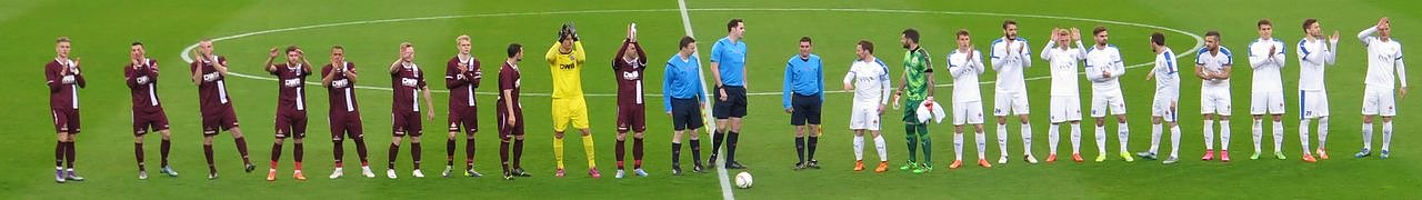 Jetzt laufen die Mannschaften auf, gleich gehts los.