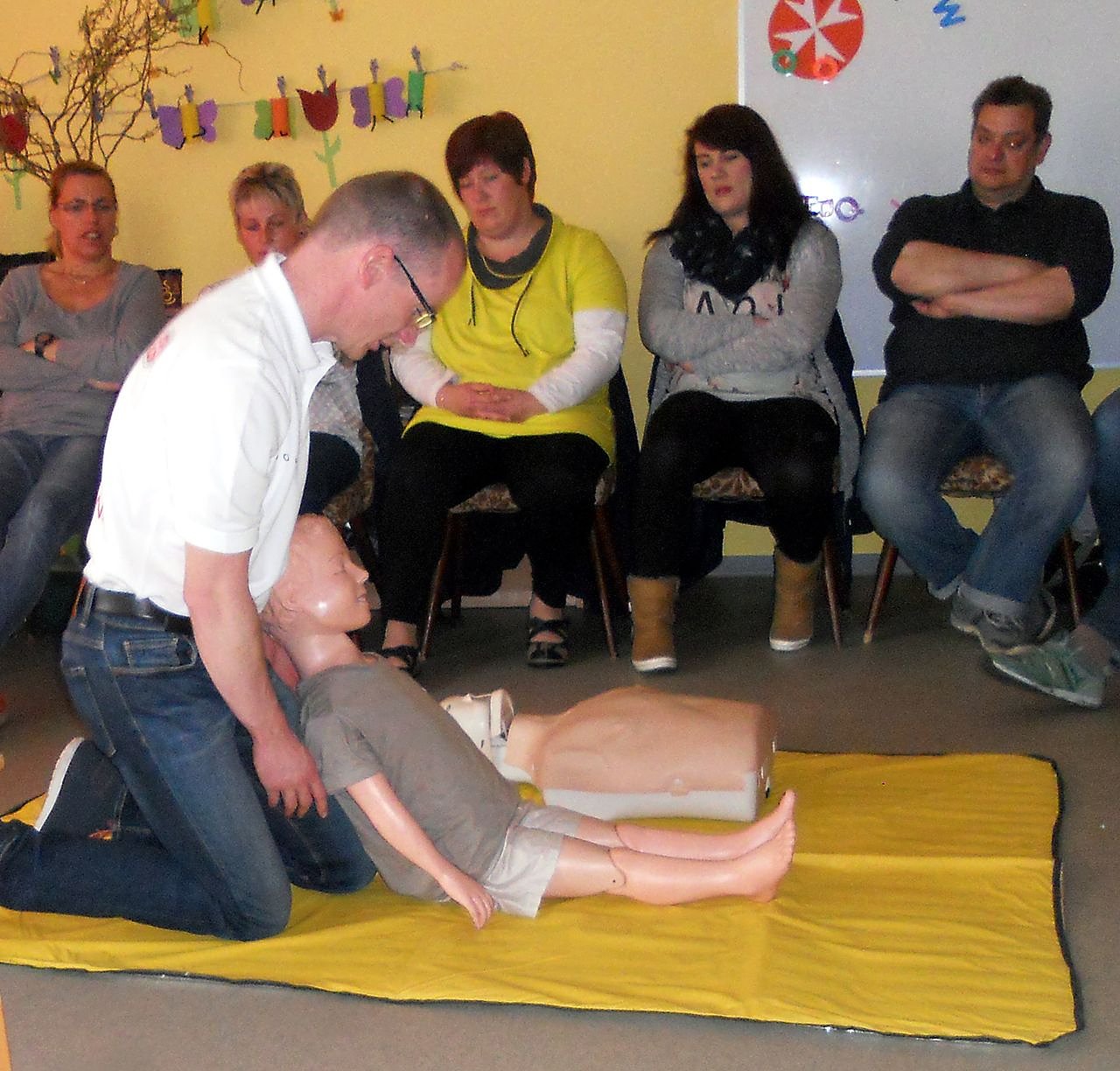 Am Ende des Tages waren die Mütter und Väter sichtlich erleichtert – denn mit seinem Fachwissen und seinem großen Engagement vermittelte Alexander Gauer den Teilnehmern das gute Gefühl, dass jeder in einer Notfallsituation helfen kann.