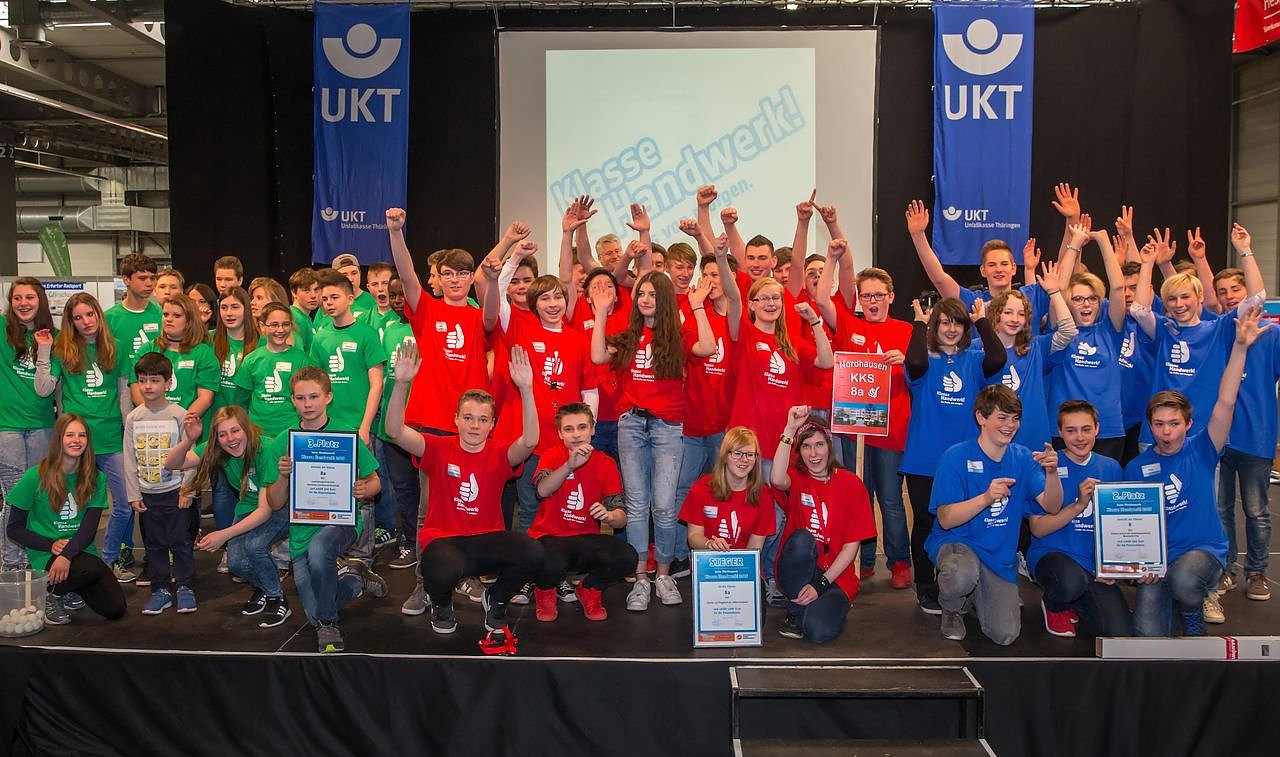 Grenzenloser Jubel bei den Schülerinnen und Schülern der Klasse 8a der Grund- und Regelschule Käthe Kollwitz aus Nordhausen. Sie haben den beliebten Schülerwettbewerb Klasse Handwerk 2016 gewonnen und können sich über ein sattes Preisgeld von 1000 Euro freuen...