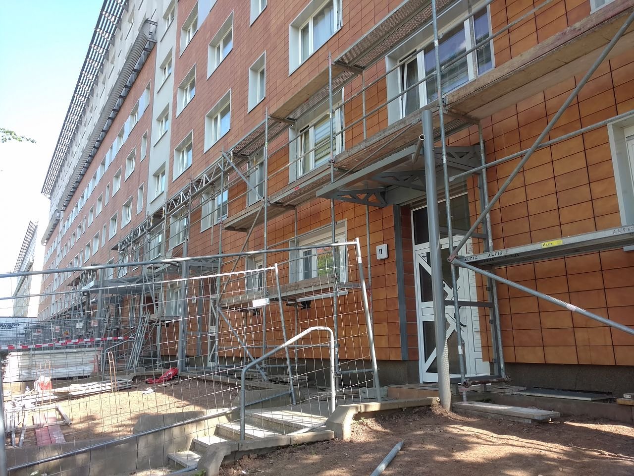 Gestern beobachtete Peter Blei, wie das Gerüst an er einen Wohnscheibe der Wohnungsbaugenossenschaft Südharz emporwächst. Einige Passanten meinten gar, die Kacheln werden abgerissen. Wir haben nachgefragt...