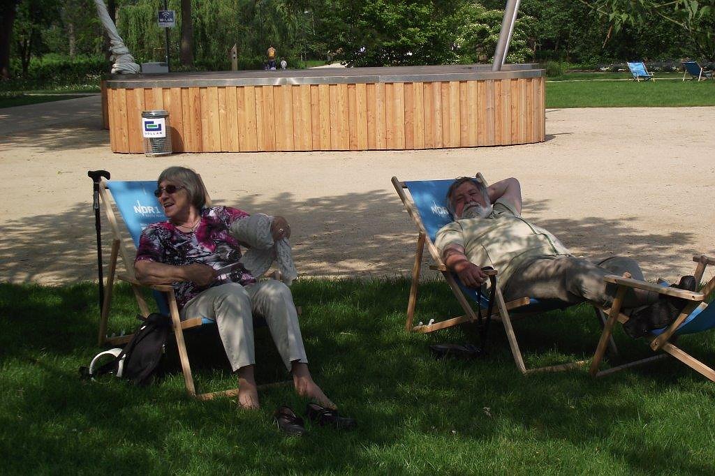 Tierarzt Dr. Kurt Glatz und Ehefrau im Liegestuhl nach Landesgartenschau-Rundgang. (Foto: Kurt Frank)