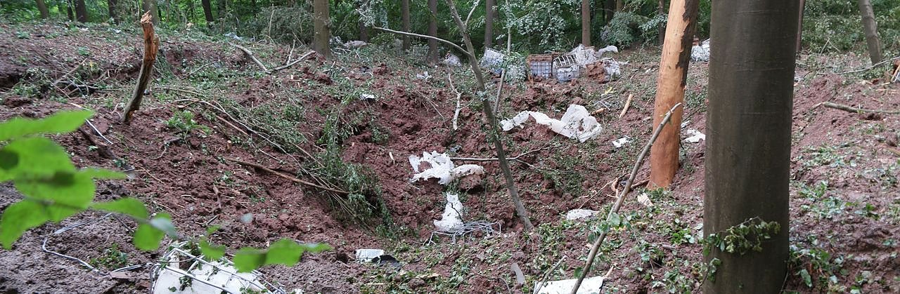 Nun ist es vollbracht - die Gefahr im Wald ist gebannt. Die gute Nachricht: Niemand wurde verletzt, keine Gebäude beschädigt. Der Sprengort sieht aus "als wäre eine Bombe eingeschlagen"...