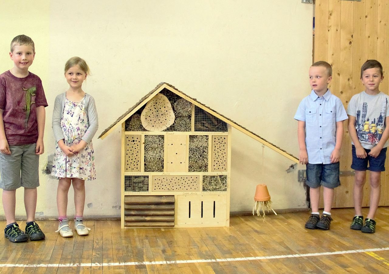 Von den Kindern vorgetragene Lieder und Gedichte stimmten alle auf die baldige Einschulung ein. Als Abschiedsgeschenk von den Großen für ihre kleinen Freunde gab es ein tolles Insektenhotel.