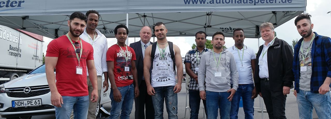 Es gab aber auch Nachrichten, die abseits der wohlgeformten Worte zu sehen und zu erleben waren. Das sind zum Beispiel die Iraker, Syrer und Eritreer, die - aller Unkenrufe zum Trotz - immer noch eine vorbereitende Ausbildung in der Peter-Gruppe absolvieren. In zwei Schichten betreuen sie heute bis 16 Uhr den Stand des Unternehmens auf dem Autodrom. Helmut Peter ist überzeugt, dass alle, die im Januar begonnen haben, auch die erste Etappe bis zum Beginn einer Ausbildung schaffen werden.